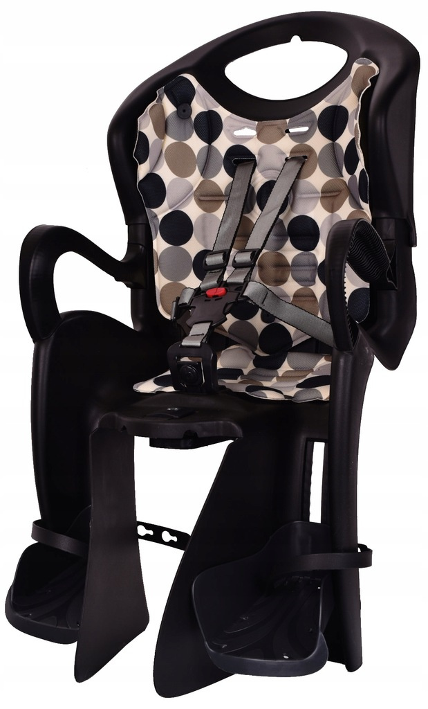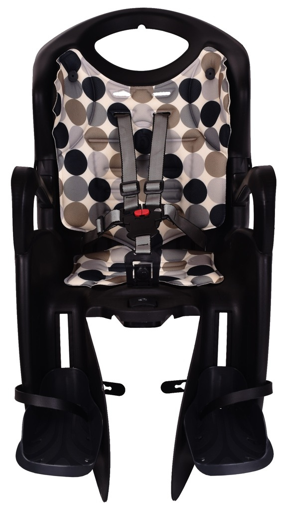 montaż na giętkim, stalowym pałąku, który doskonale amortyzuje wszelkie wstrząsy zapewniając dziecku wysoki komfort podczas wycieczek rowerowych